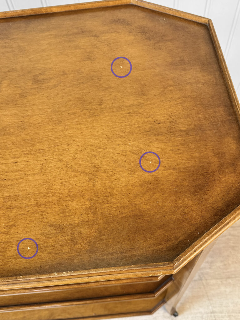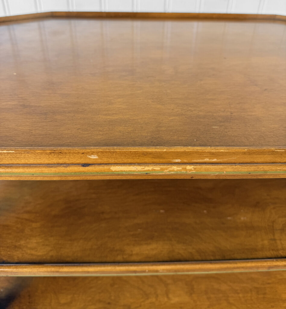 Overall structurally sound, solid and sturdy. The stand supports a tremendous amount of weight. Blemishes to the finish are shown, this includes surface scratches and staining.