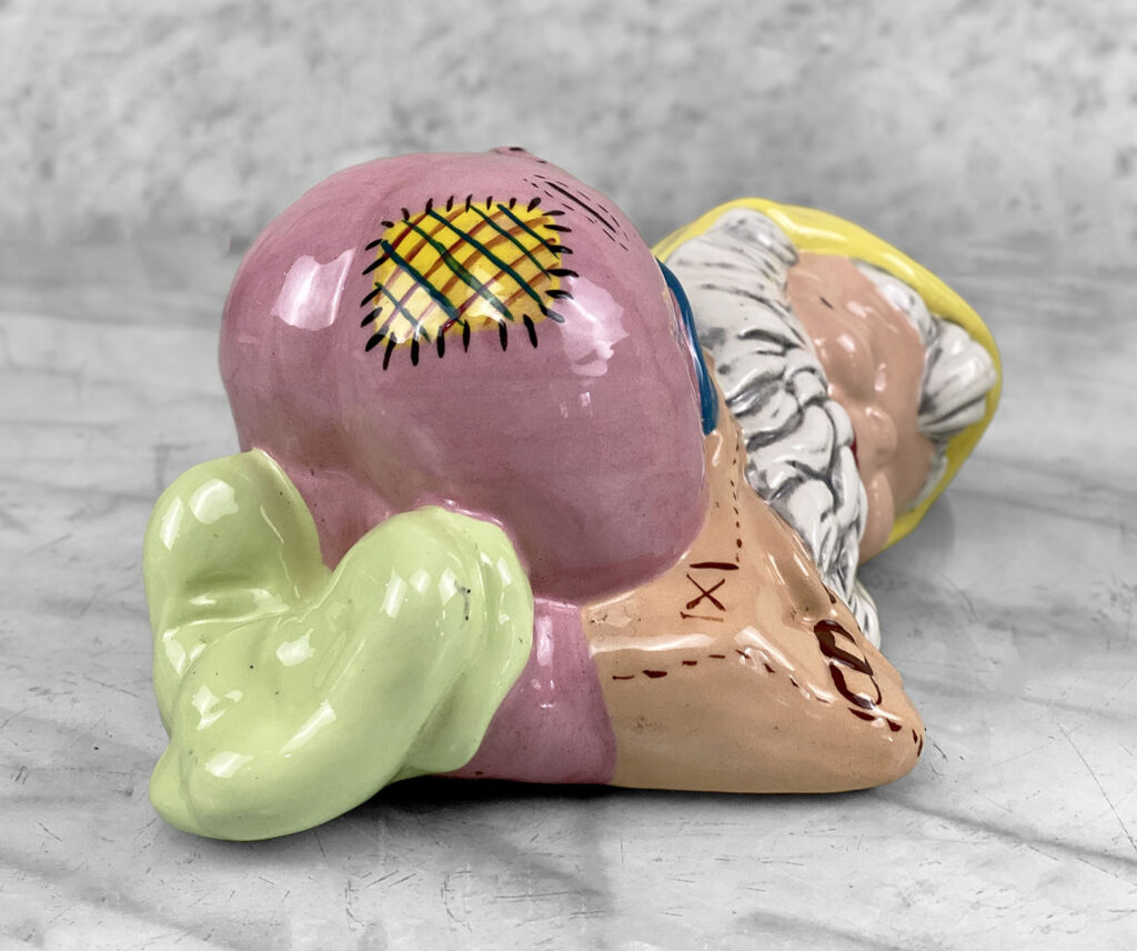 This Pair of Porcelain Gnome Sculptures are in overall good condition without any cracks or repairs shown.