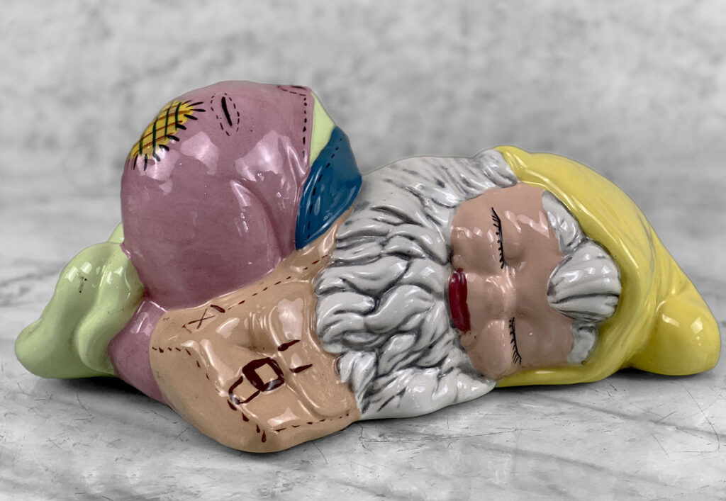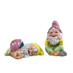 • One Gnome Shown Sleeping, The Other Awake & Cheerful