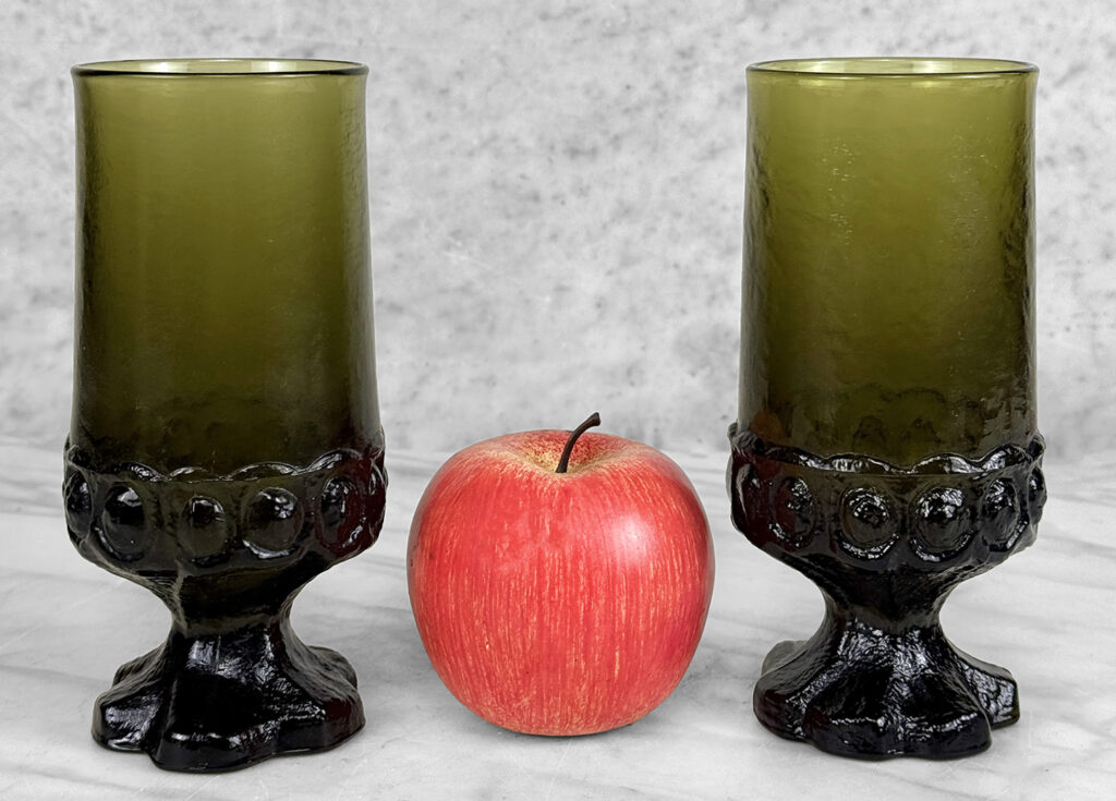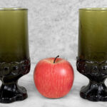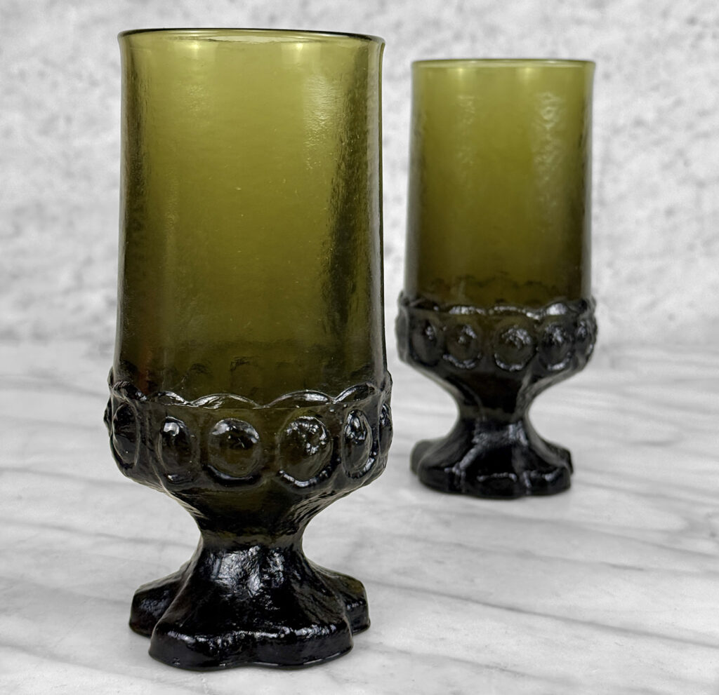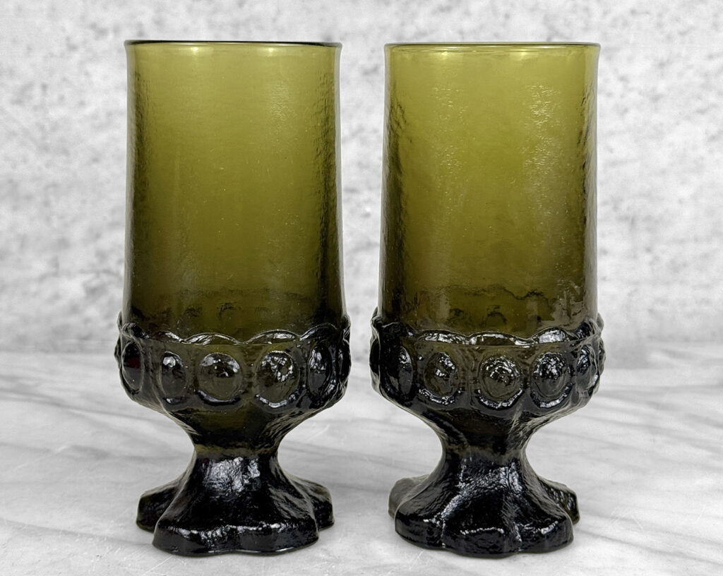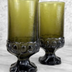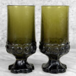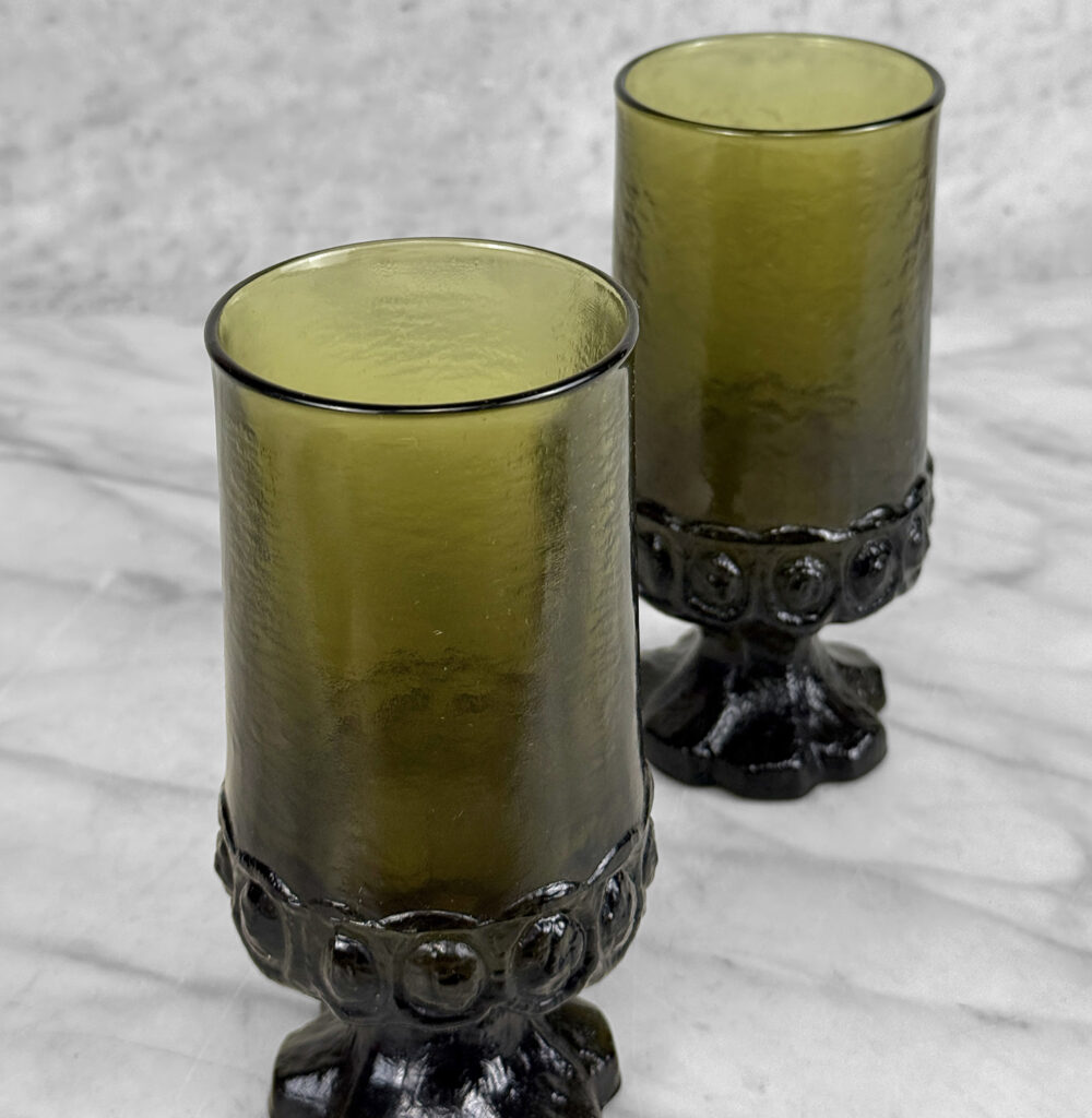 Vintage Gothic Brutalist Olive Green Glass Goblet Drinking Glasses – A Pair