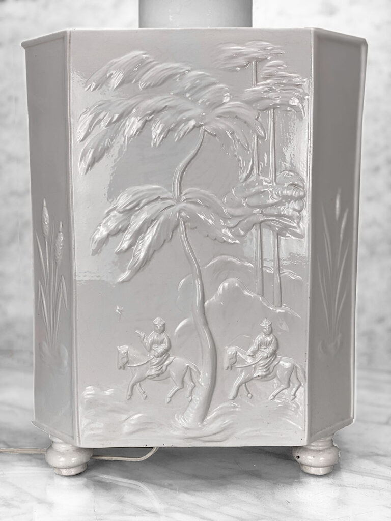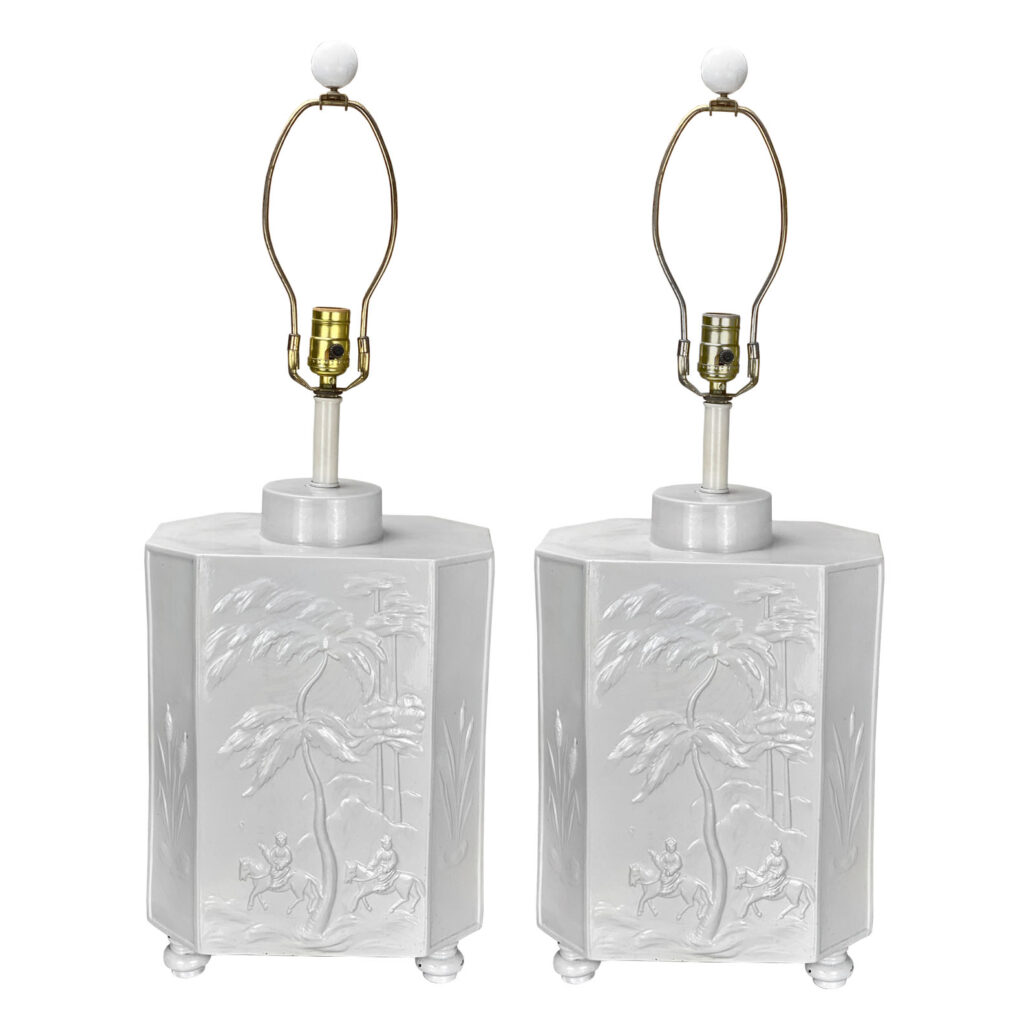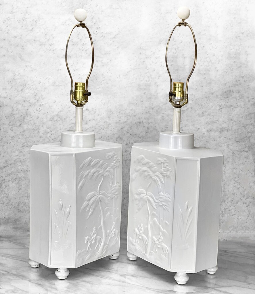 Vintage Hollywood Regency Oriental White Porcelain Table Lamps, A Pair, Italy, c. 1970’s
