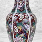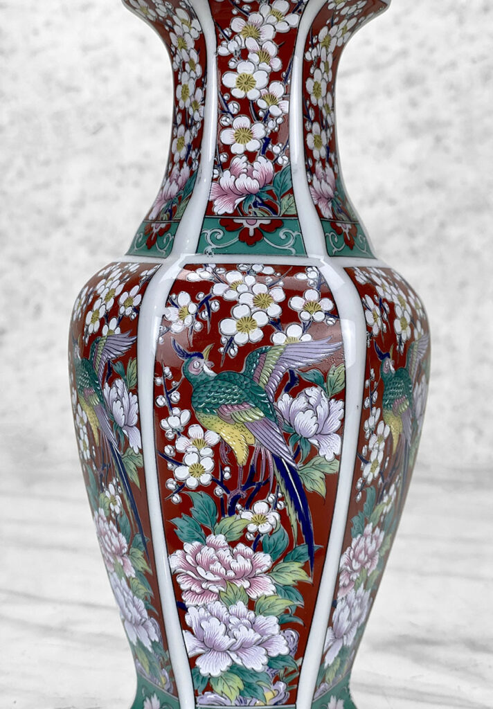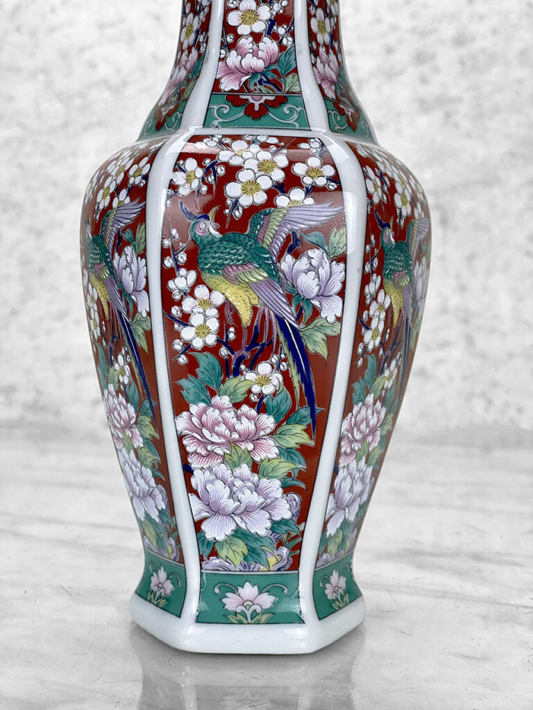 Vintage Japanese Porcelain Enamel Birds of Paradise Motif Paneled Vase, c. Mid 20th Century