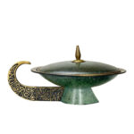 Vintage Judaica Brass and Verdigris Enamel Lidded Nut Dish with Handle, Israel, c. Mid 20th Century