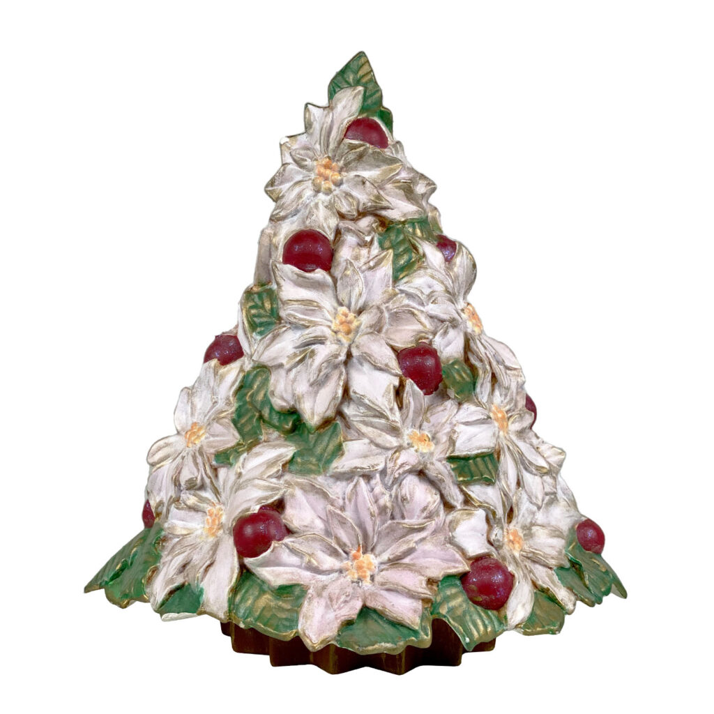 Vintage Ceramic Poinsettia Floral Christmas Tree Sculpture, c. Late 20th Century