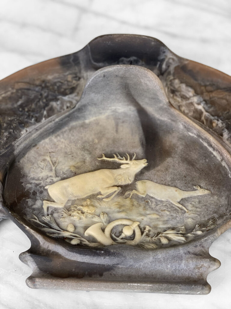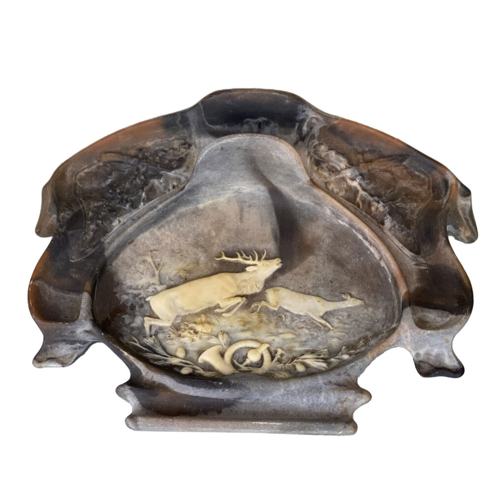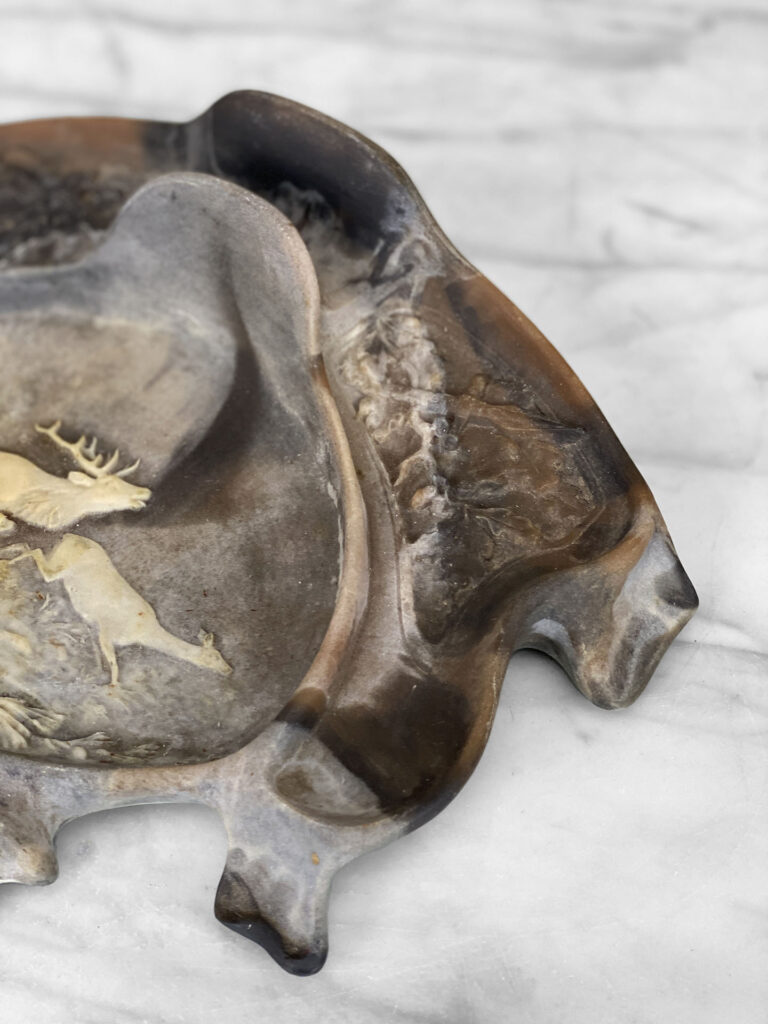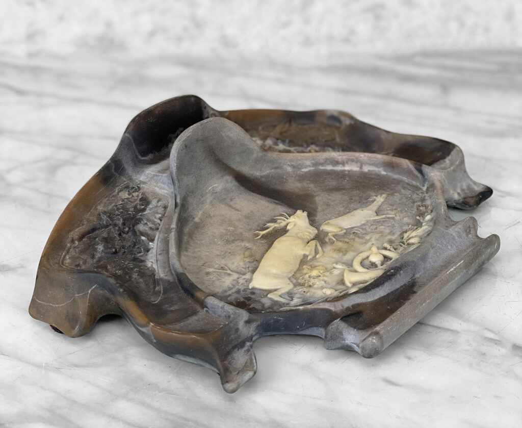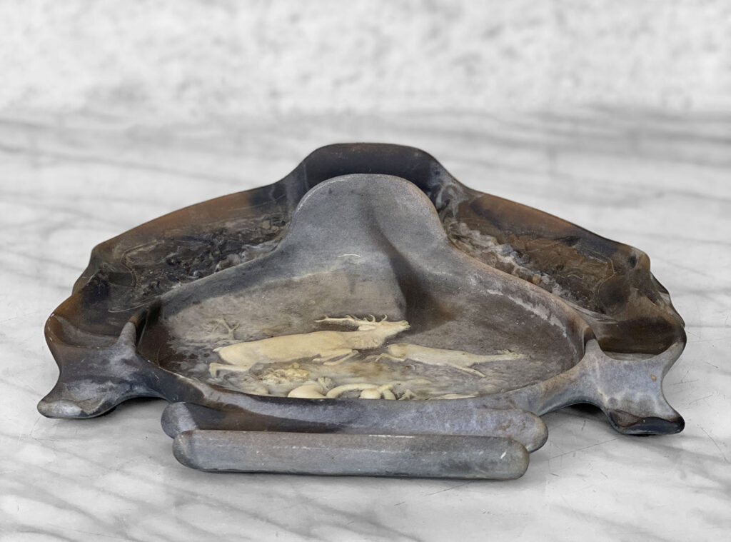 Vintage Traditional Natural Stone Carved Stag Elk Motif Pen Rest Library Desk Set, c. Mid 20th Century