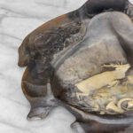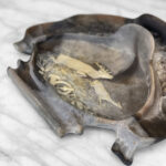 This Natural Stone Carved Library Desk Set was exceptionally well made. Mild surface scratches and discoloration is shown from age. There aren’t any cracks or chips shown.