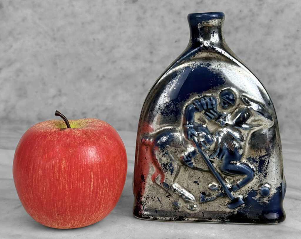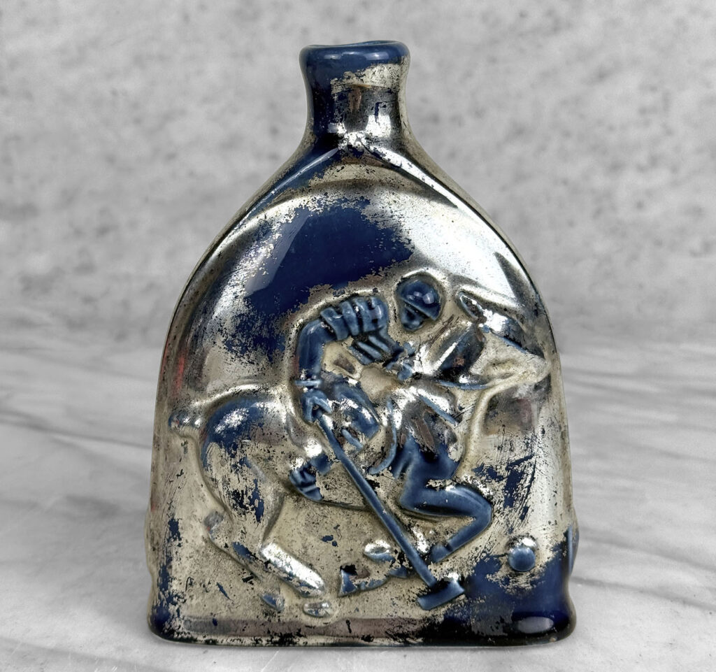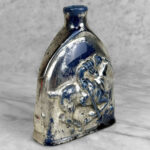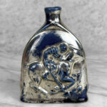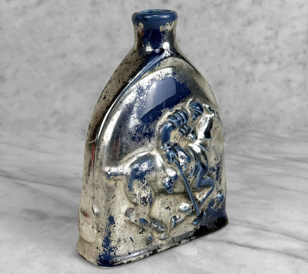 Vintage Traditional Polo Equestrian Blue & Silver Pottery Flask Vase