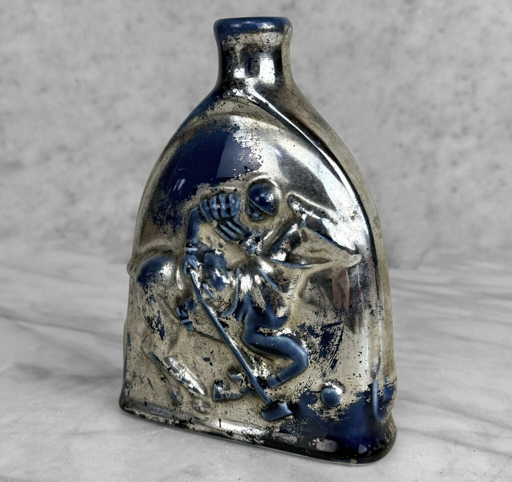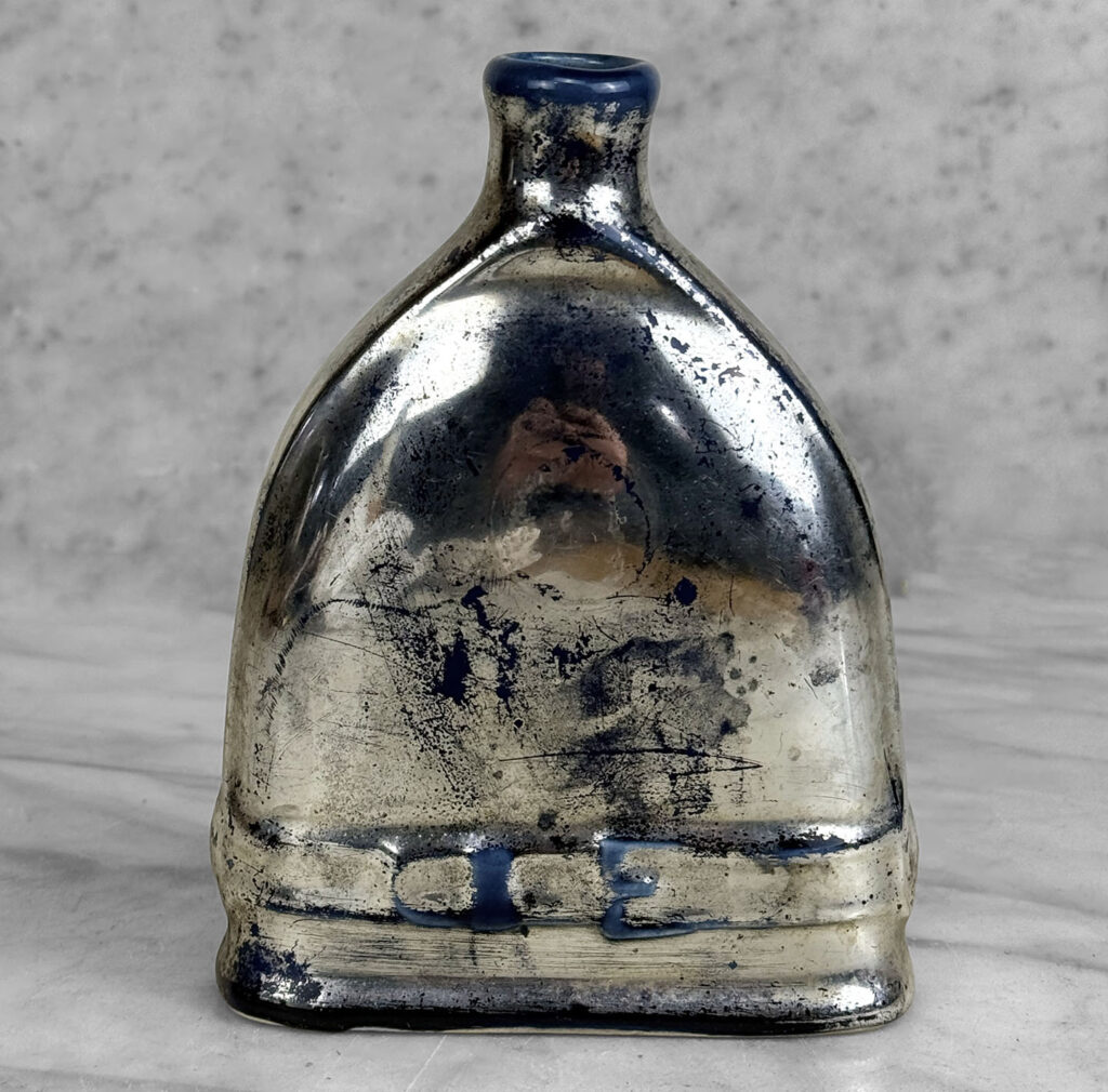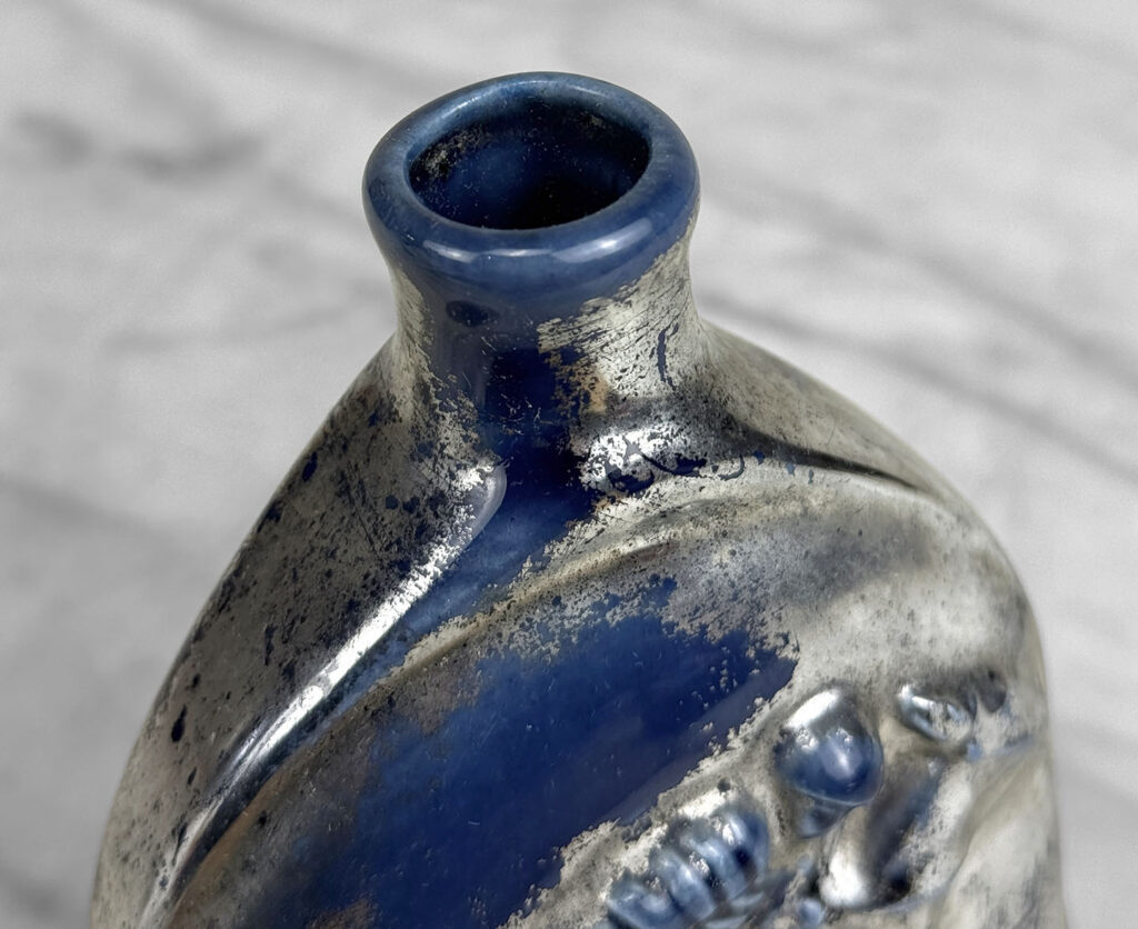 A Traditional Equestrian / Polo Spur Blue and Silver Flask Vase, c. Mid 20th Century