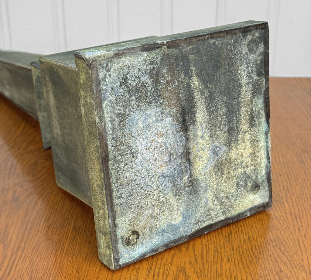 Overall good condition with wear shown to the verdigris finish. There aren’t any repairs shown.
