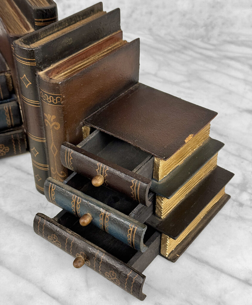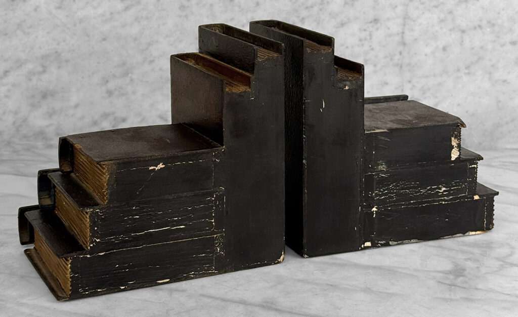 Vintage Traditional Wood Faux Book Library Bookends – A Pair