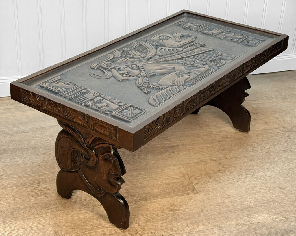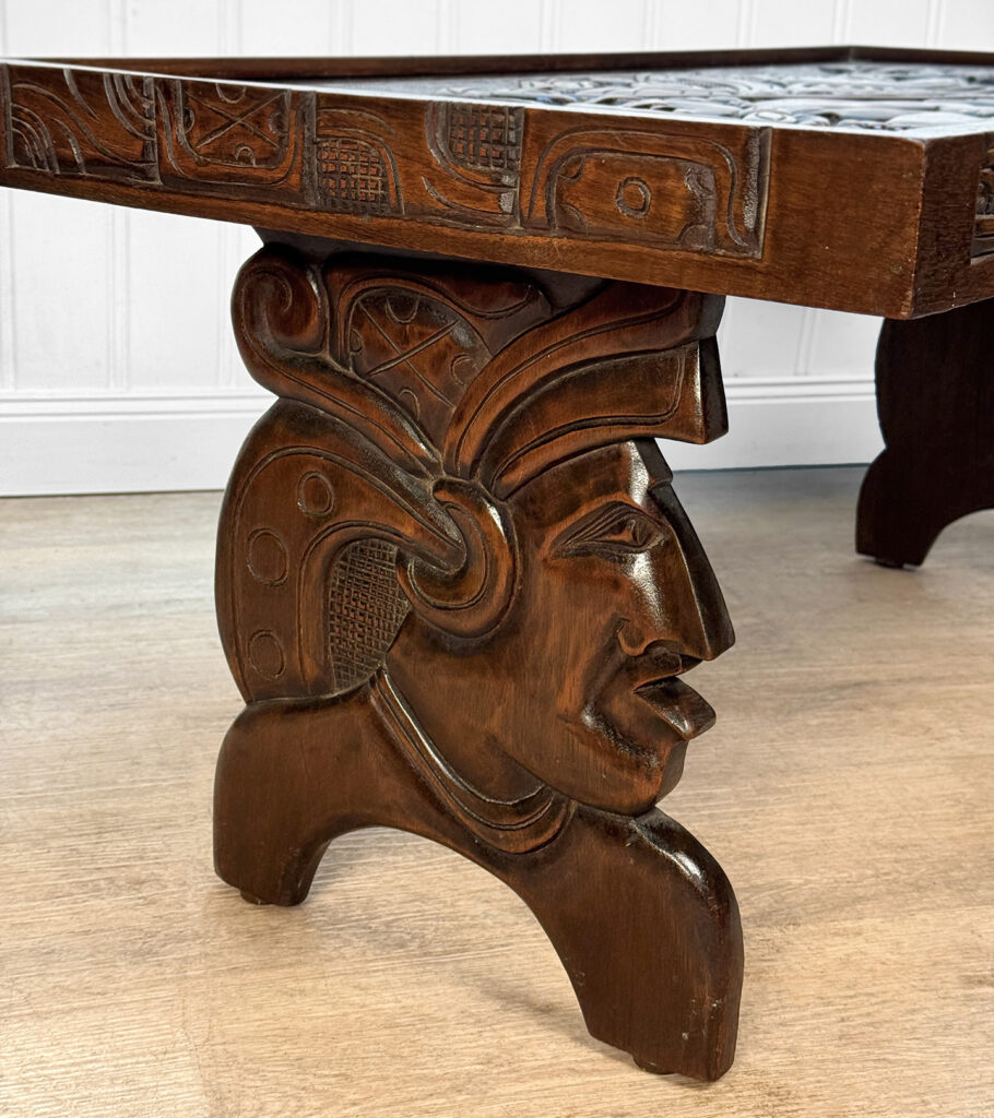 Vintage Tribal Mayan Shaman Carved Mahogany Cocktail Coffee Table