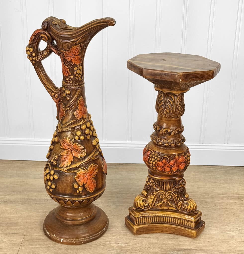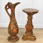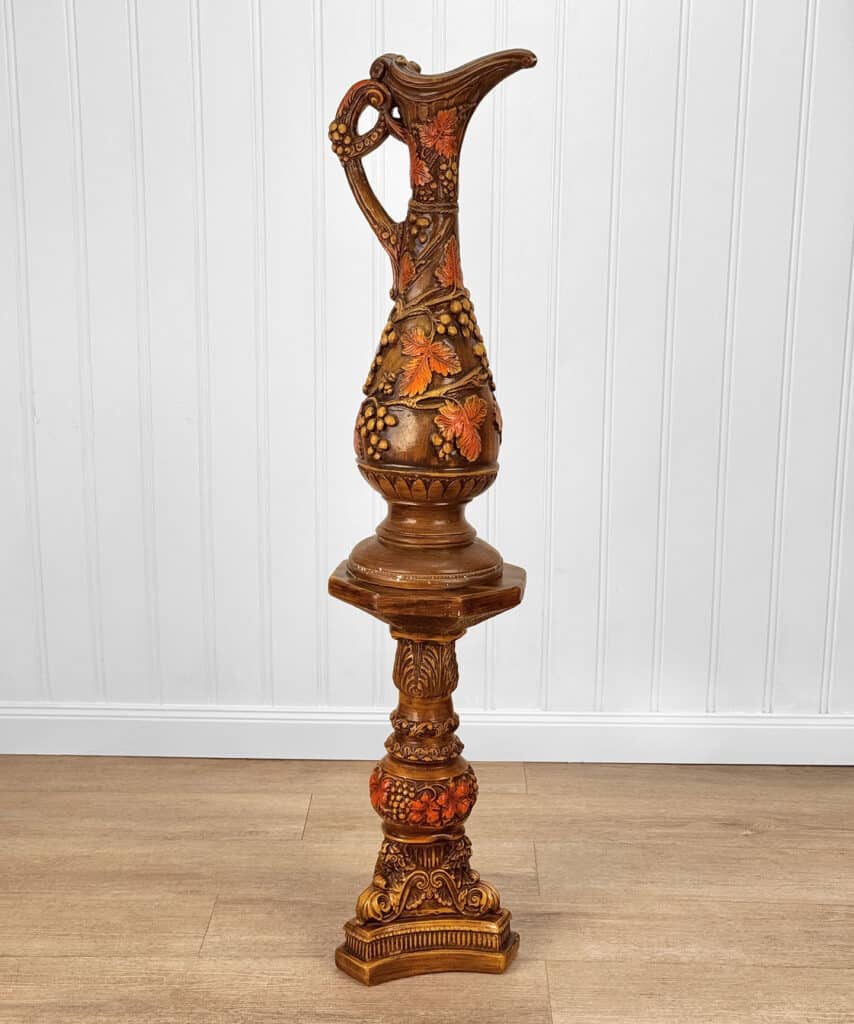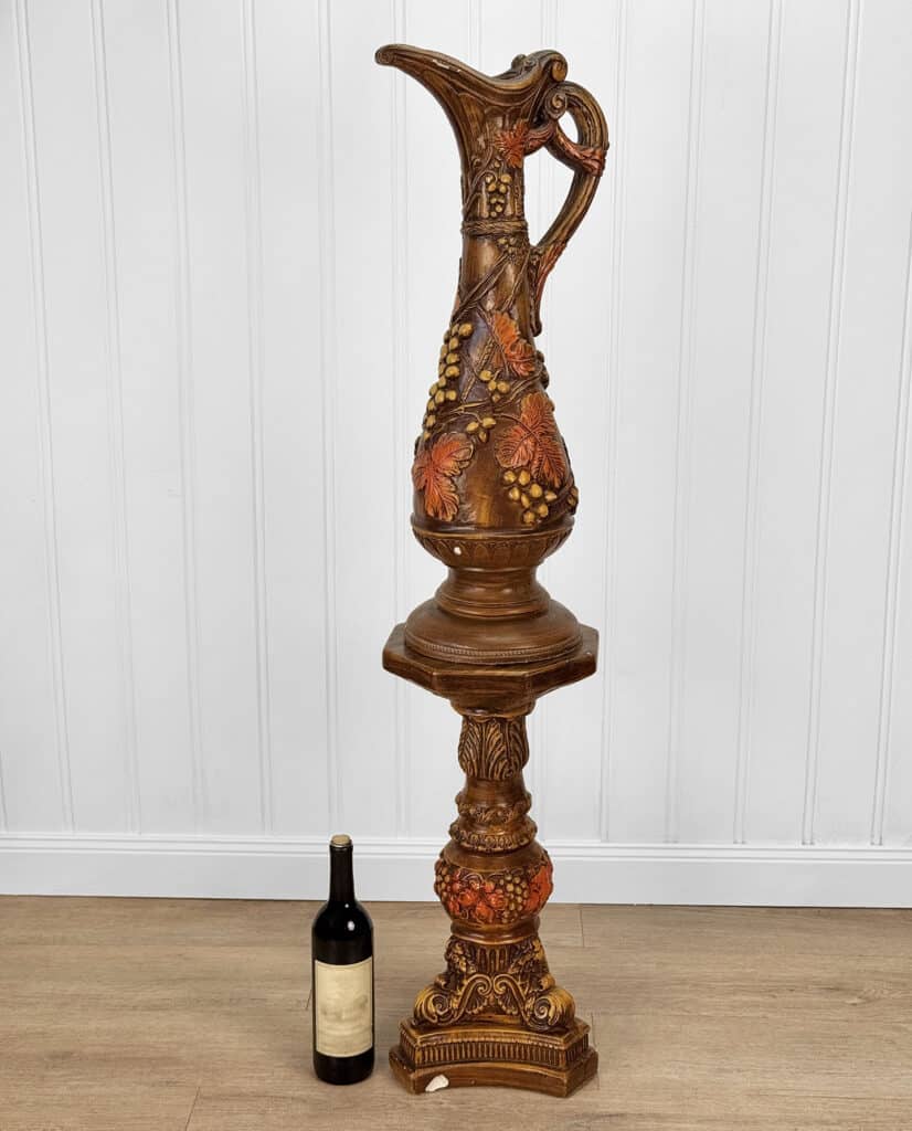 - Solid Chalkware Ewer & Pedestal with Original Enameled Finish