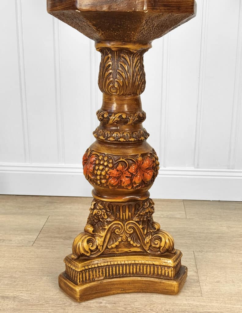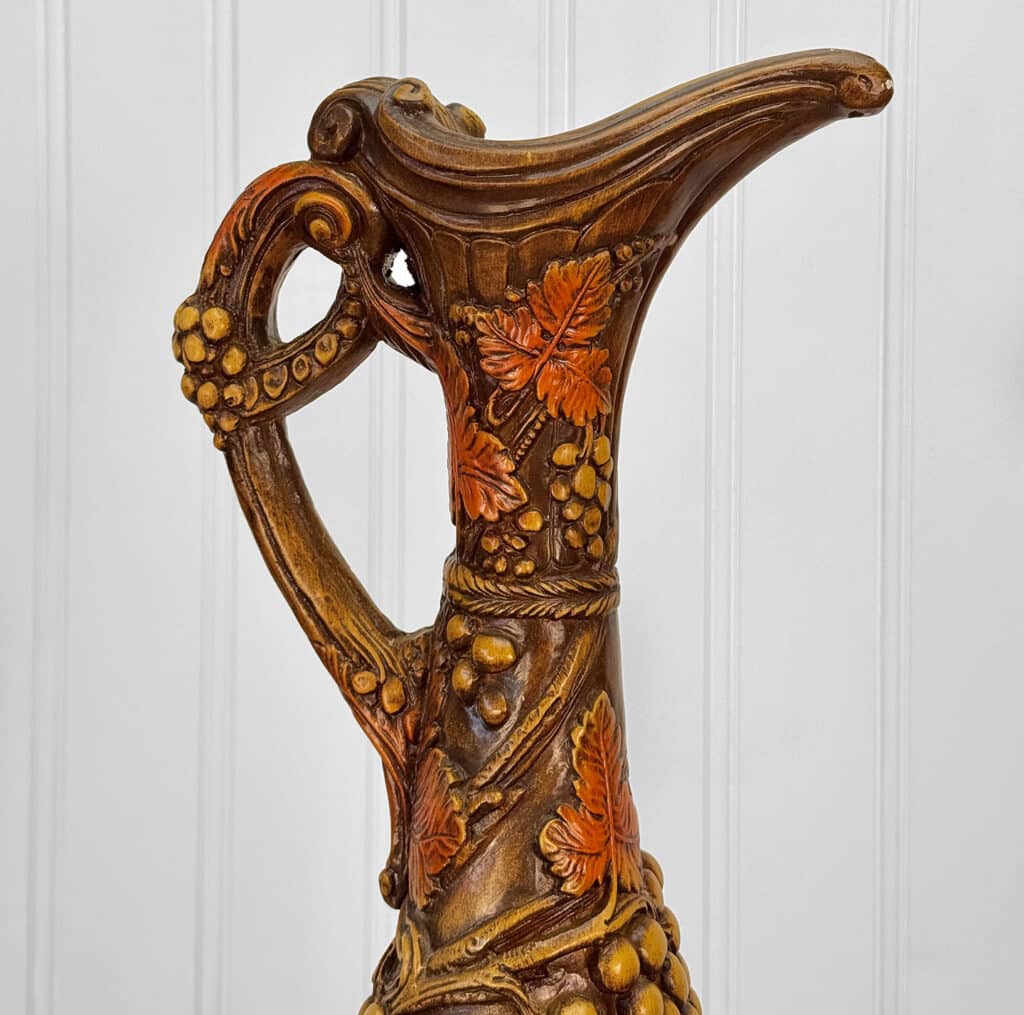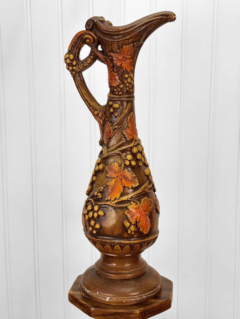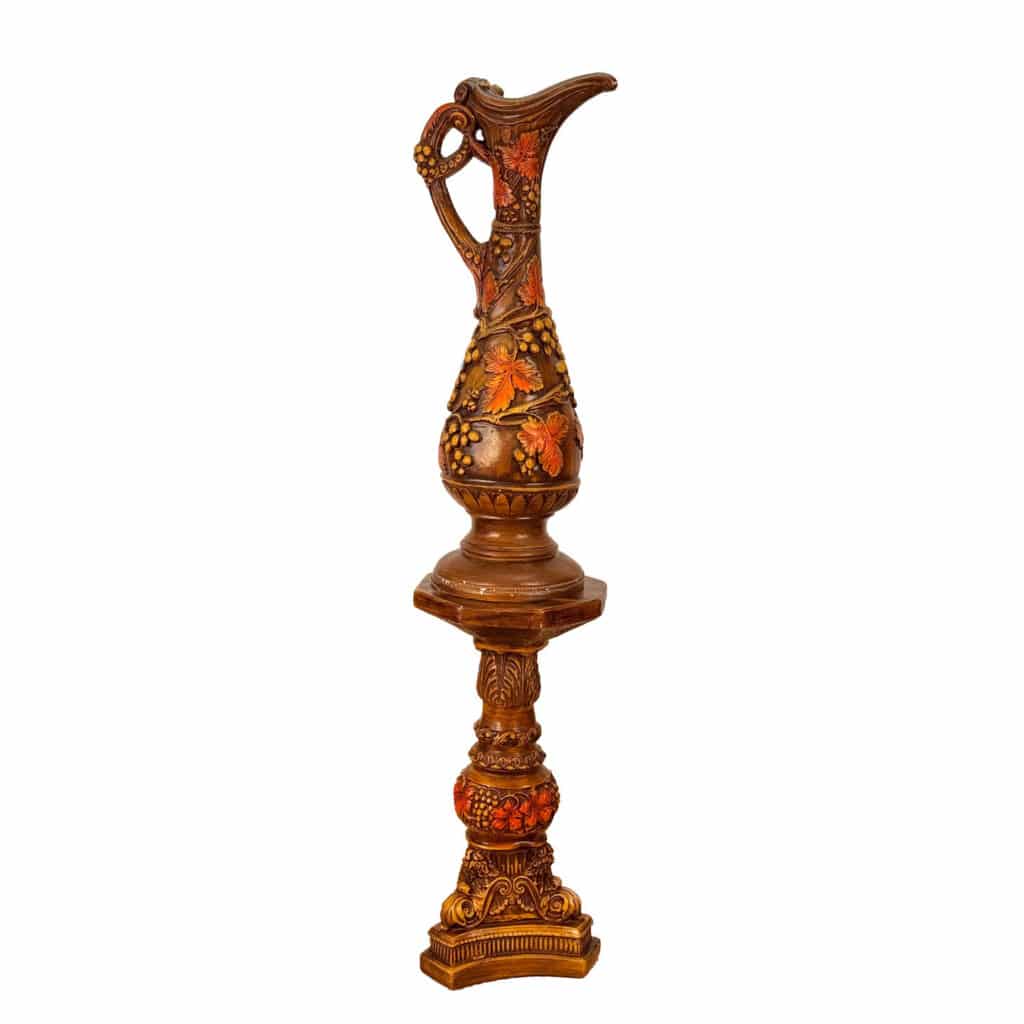- Solid Chalkware Ewer & Pedestal with Original Enameled Finish