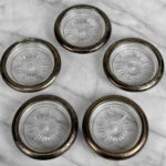 A Set of 5 Italian Silverplate Glass Sunburst Motif Drink Coasters, c.1970’s
