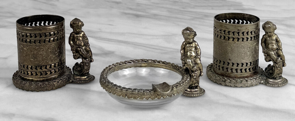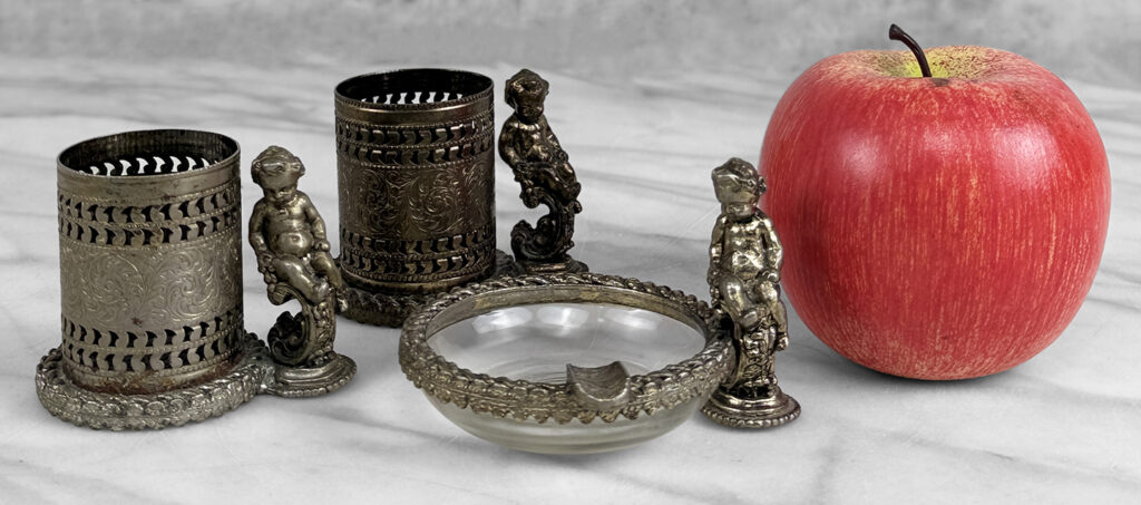 Ashtray: 3.5″ wide. 2.5″ tall x 3″ deep