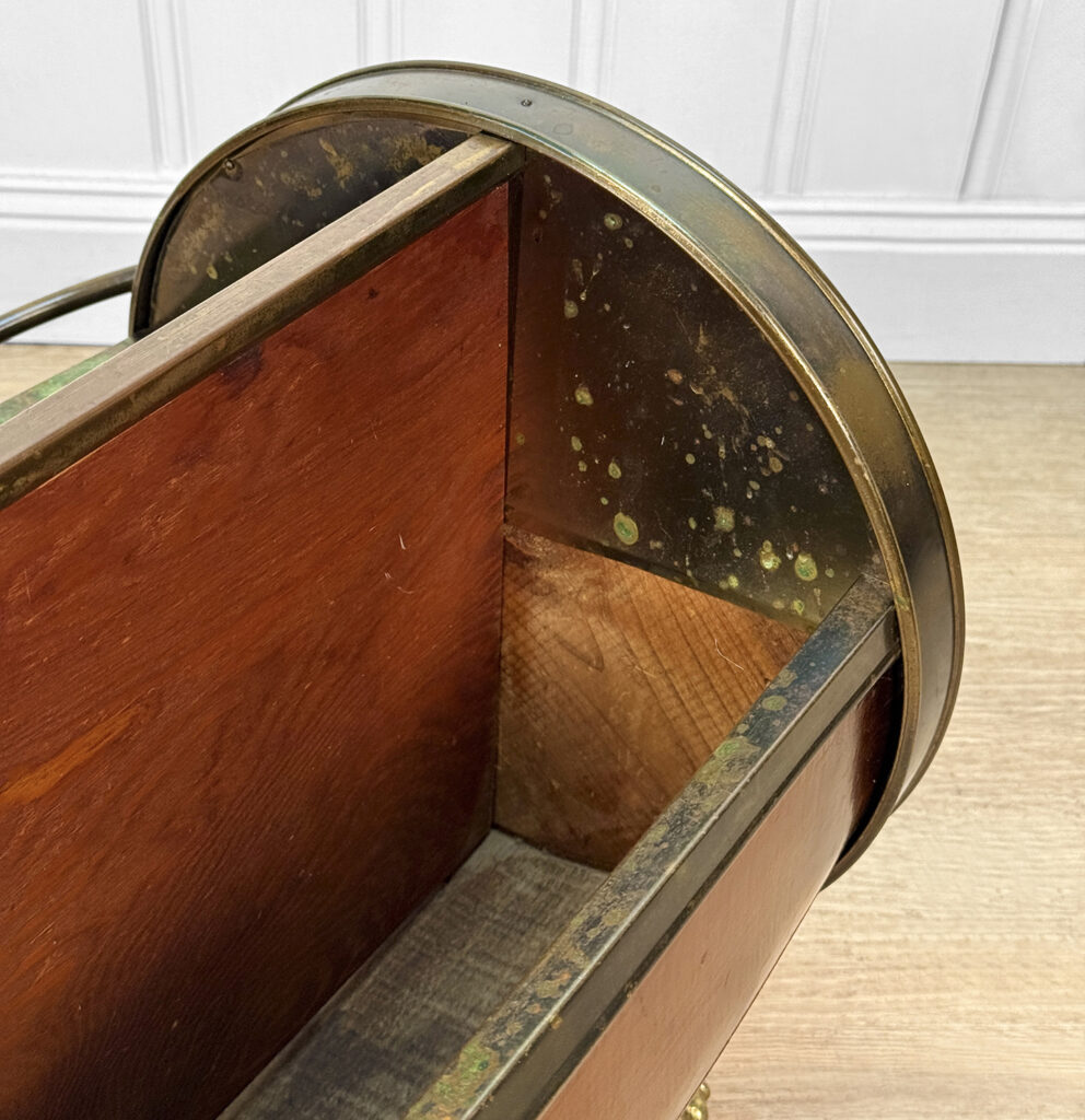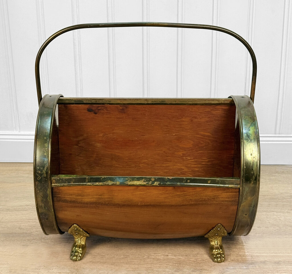Overall good condition, solid, sturdy and heavy – This magazine holder was very well made. Tarnishing and patina is shown to the copper, it adds nice character.