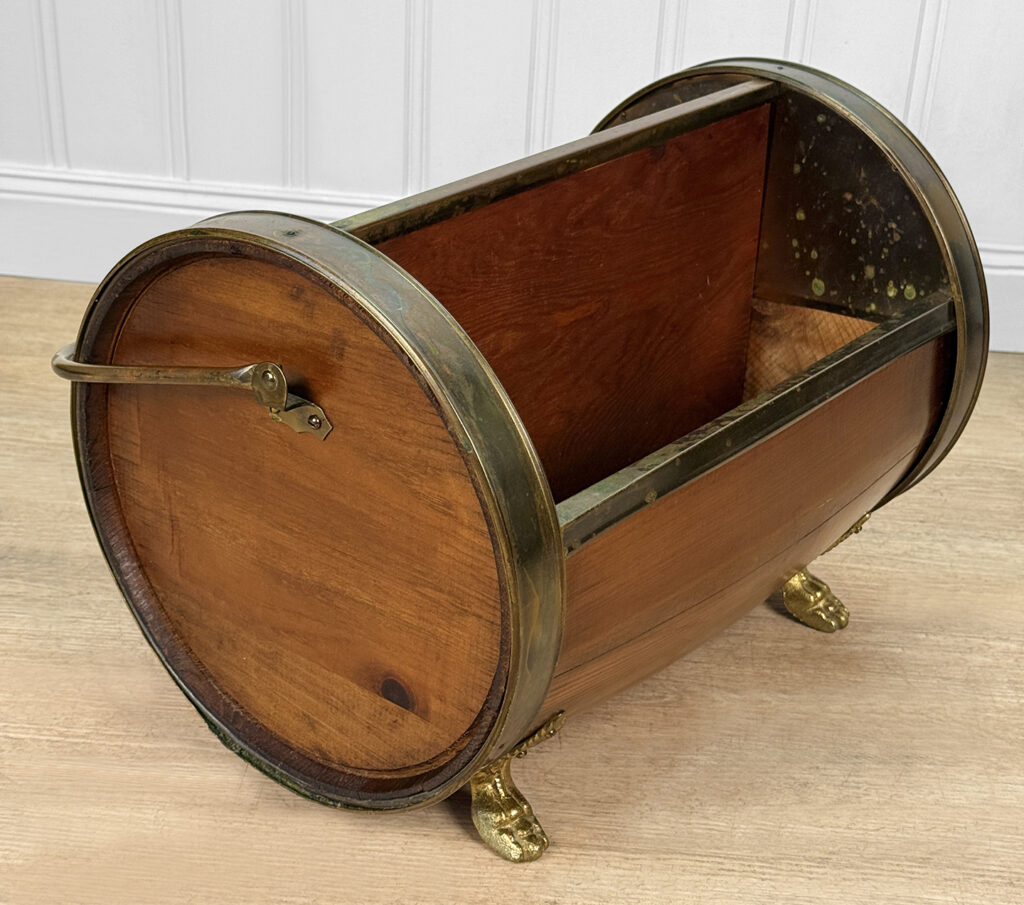- Wooden Barrel with Aged Copper Strapping & Accenting