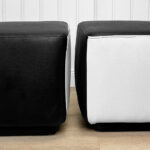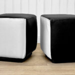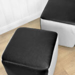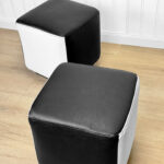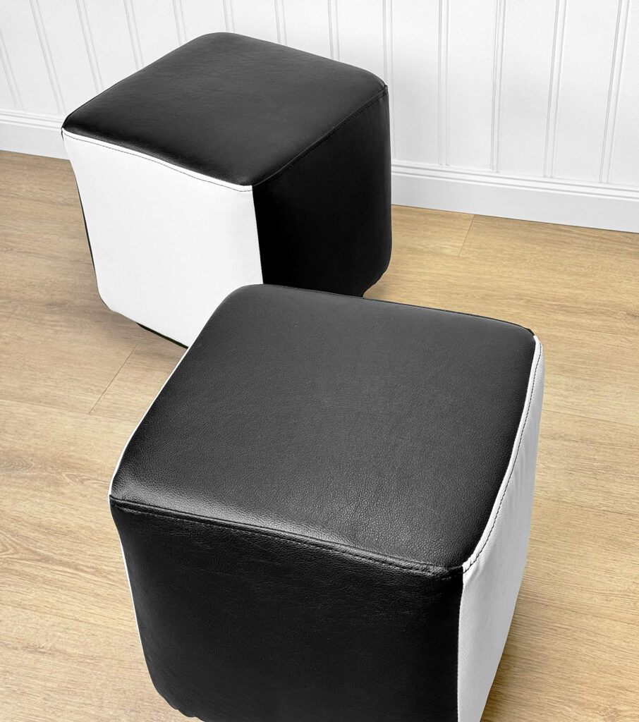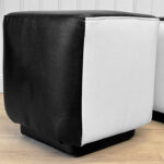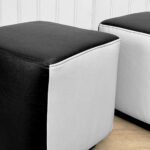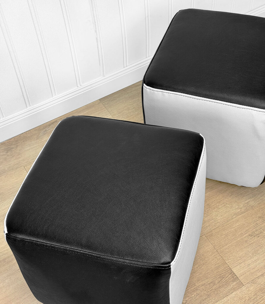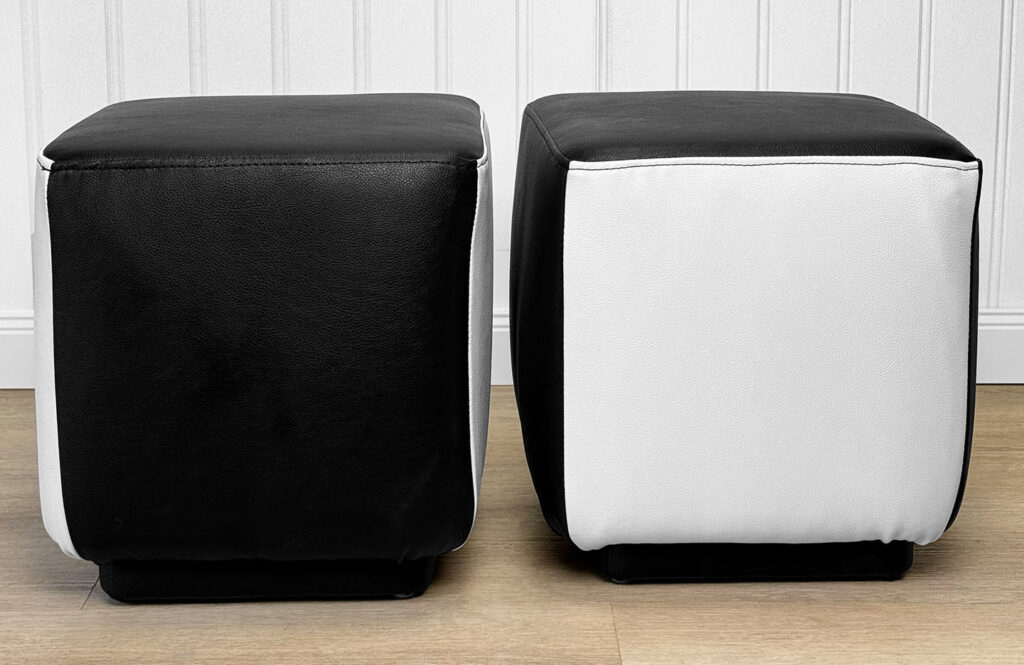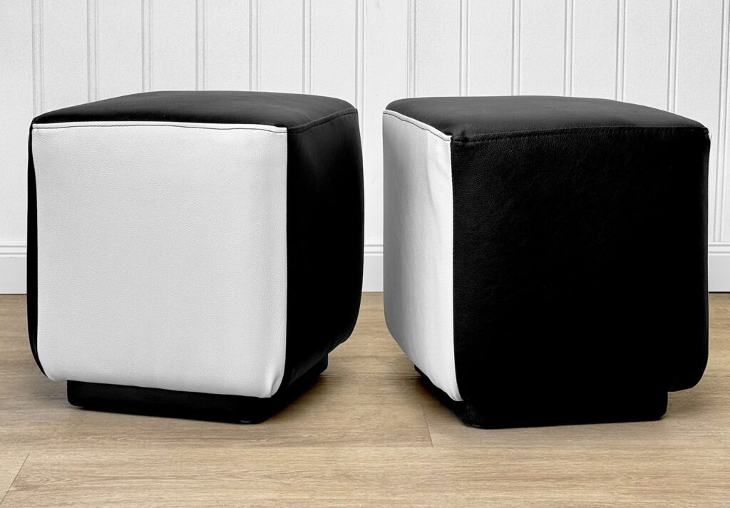 This Pair of Cube Ottomans were exceptionally well made and supports a tremendous amount of weight. Using them as a daily seat is no problem. Each Ottoman was professionally reupholstered in a high quality pebbled vinyl, there aren’t any imperfections shown.